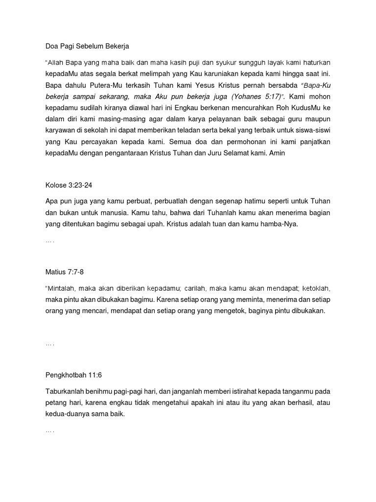 Doa Kristen Di Pagi Hari Sebelum Bekerja Dan Sekolah Contoh Surat